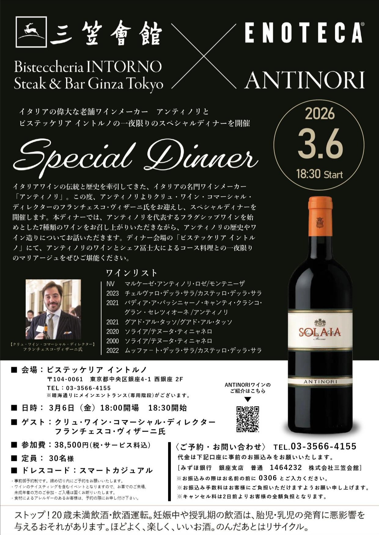 <ビステッケリア・イントルノ>イタリアの名門ワインメーカー「アンティノリ」スペシャルディナーを開催(3/6)