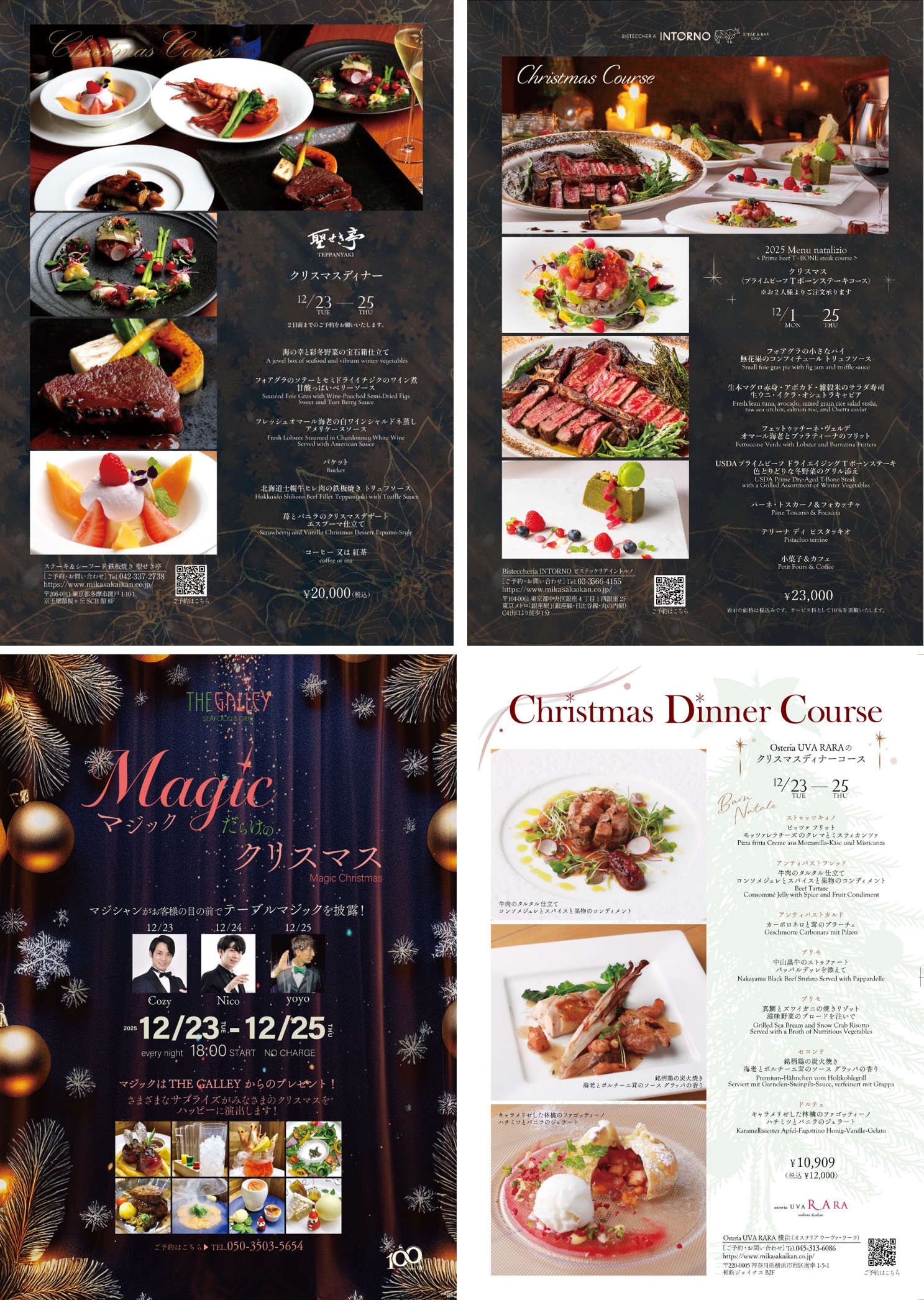 三笠会館「クリスマス メニュー&特別コースのご案内」(鉄板焼き/ステーキ/シーフード/イタリアン)