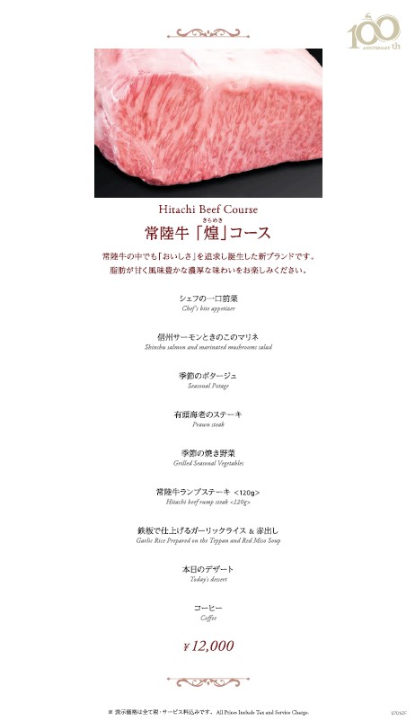 <TEPPANYAKI 大和 麻布十番店>常陸牛「煌」コースのご案内