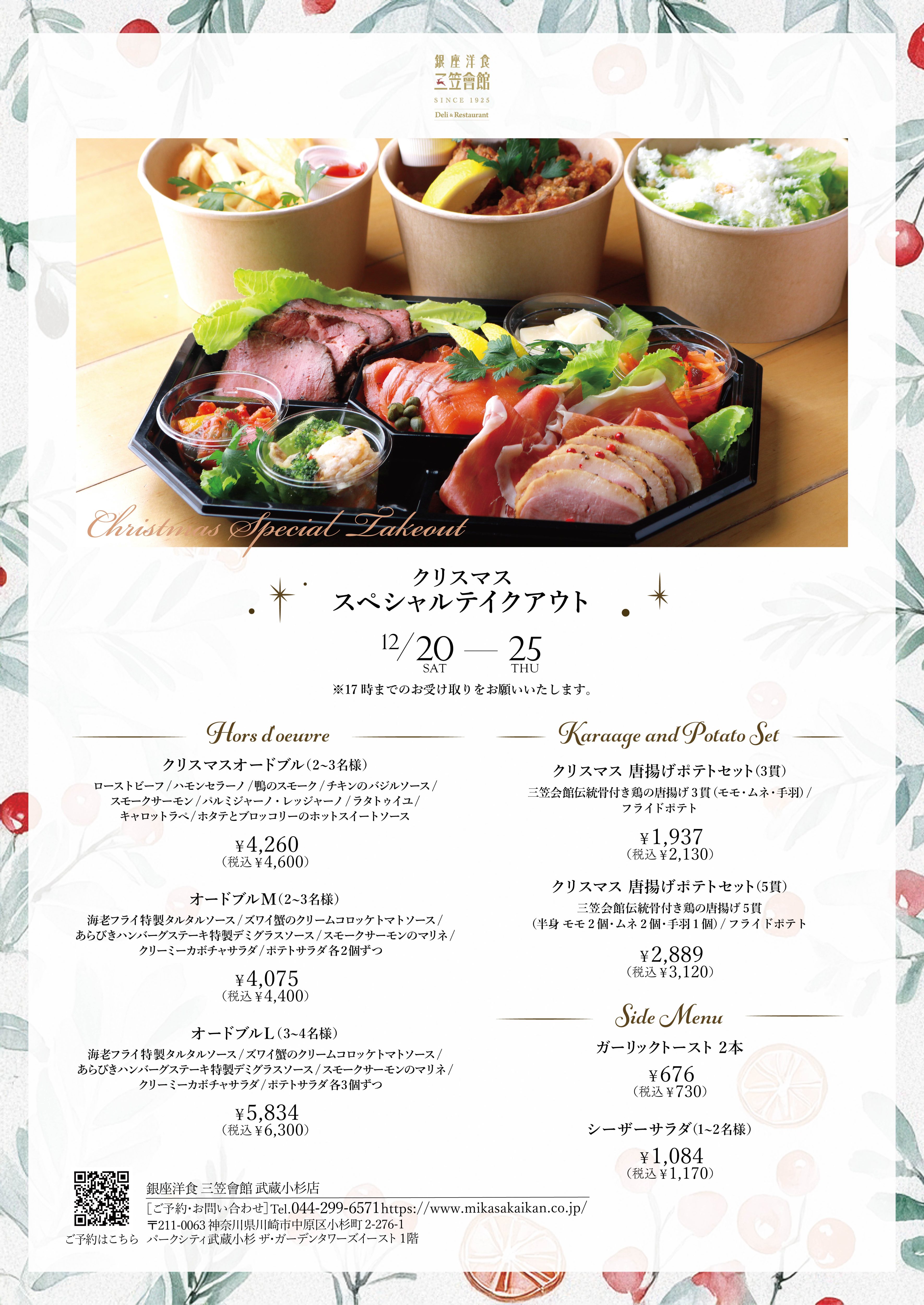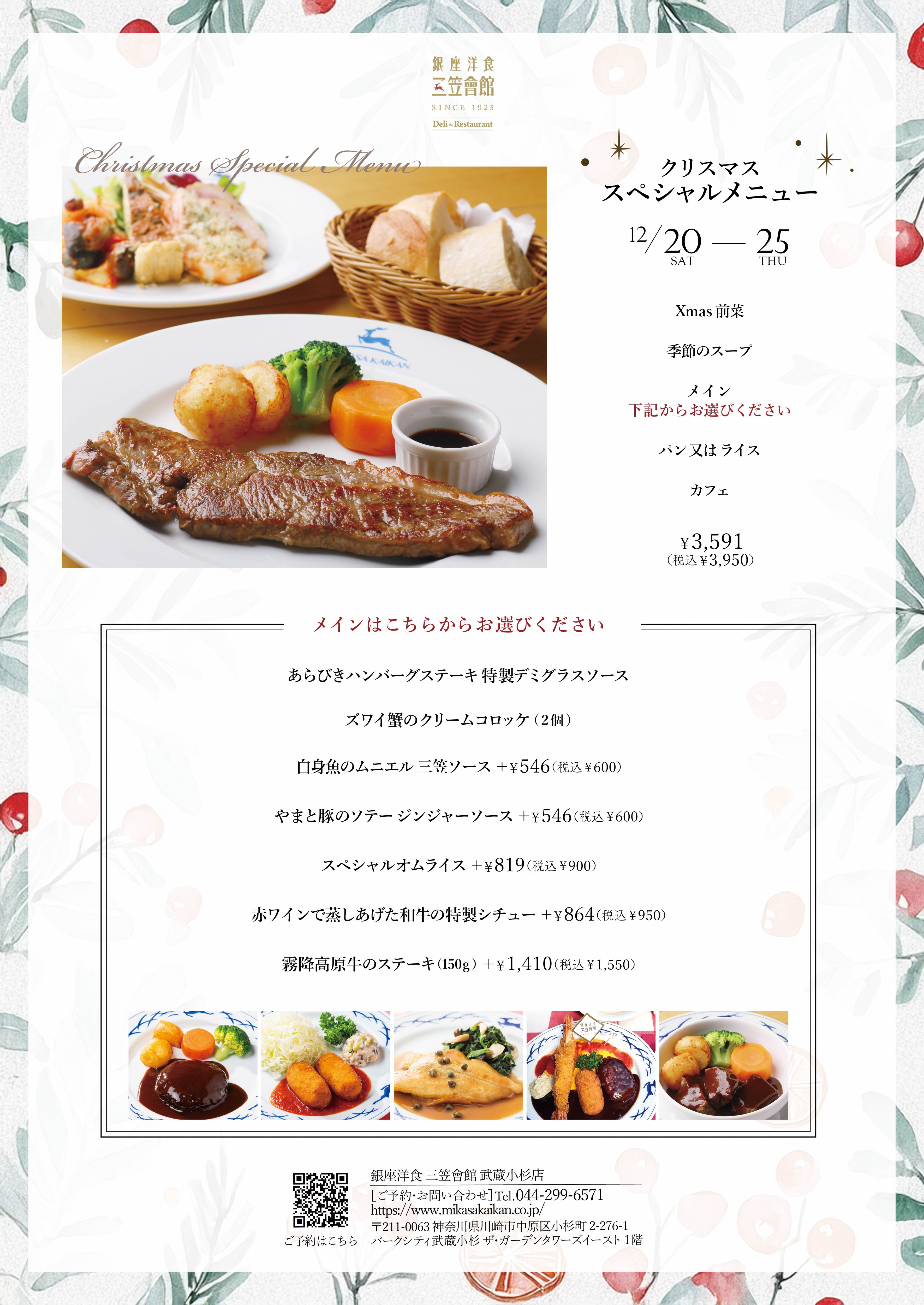 銀座洋食三笠会館 武蔵小杉店よりクリスマススペシャルメニューのご案内をいたします。