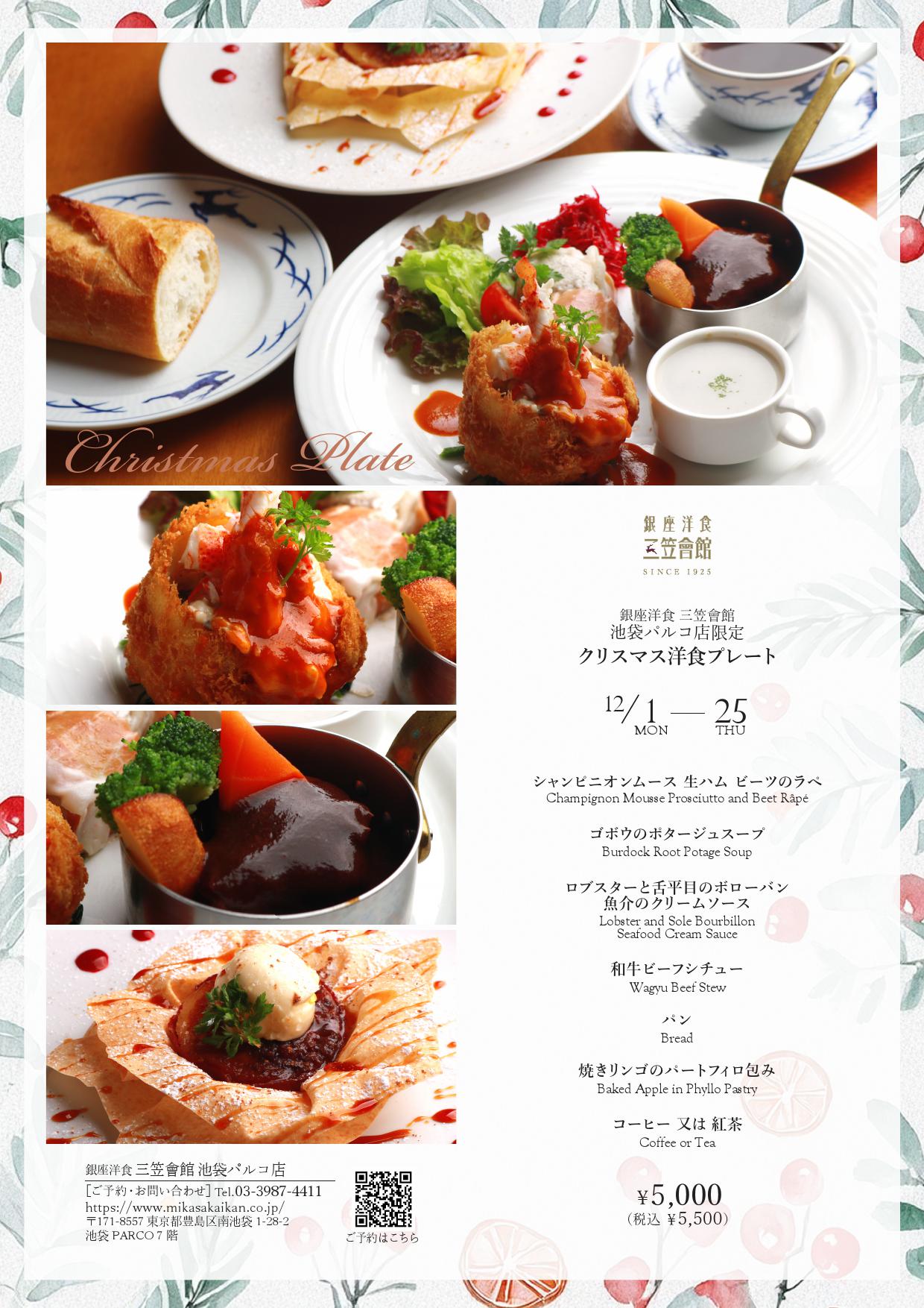<三笠會館 池袋パルコ店>クリスマス洋食プレート (12/1~12/25限定)のご案内