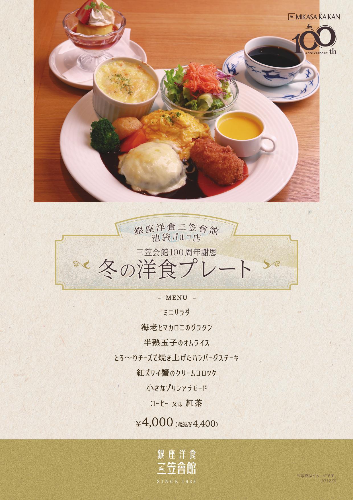 <銀座洋食 三笠會館 池袋パルコ店>冬の洋食プレート&おすすめメニューのご案内