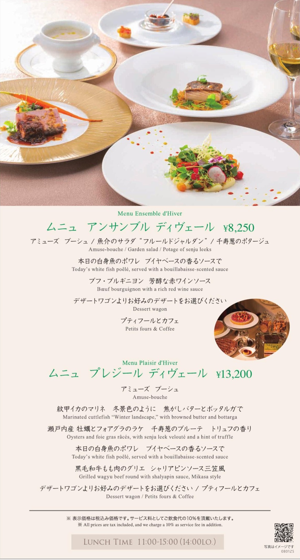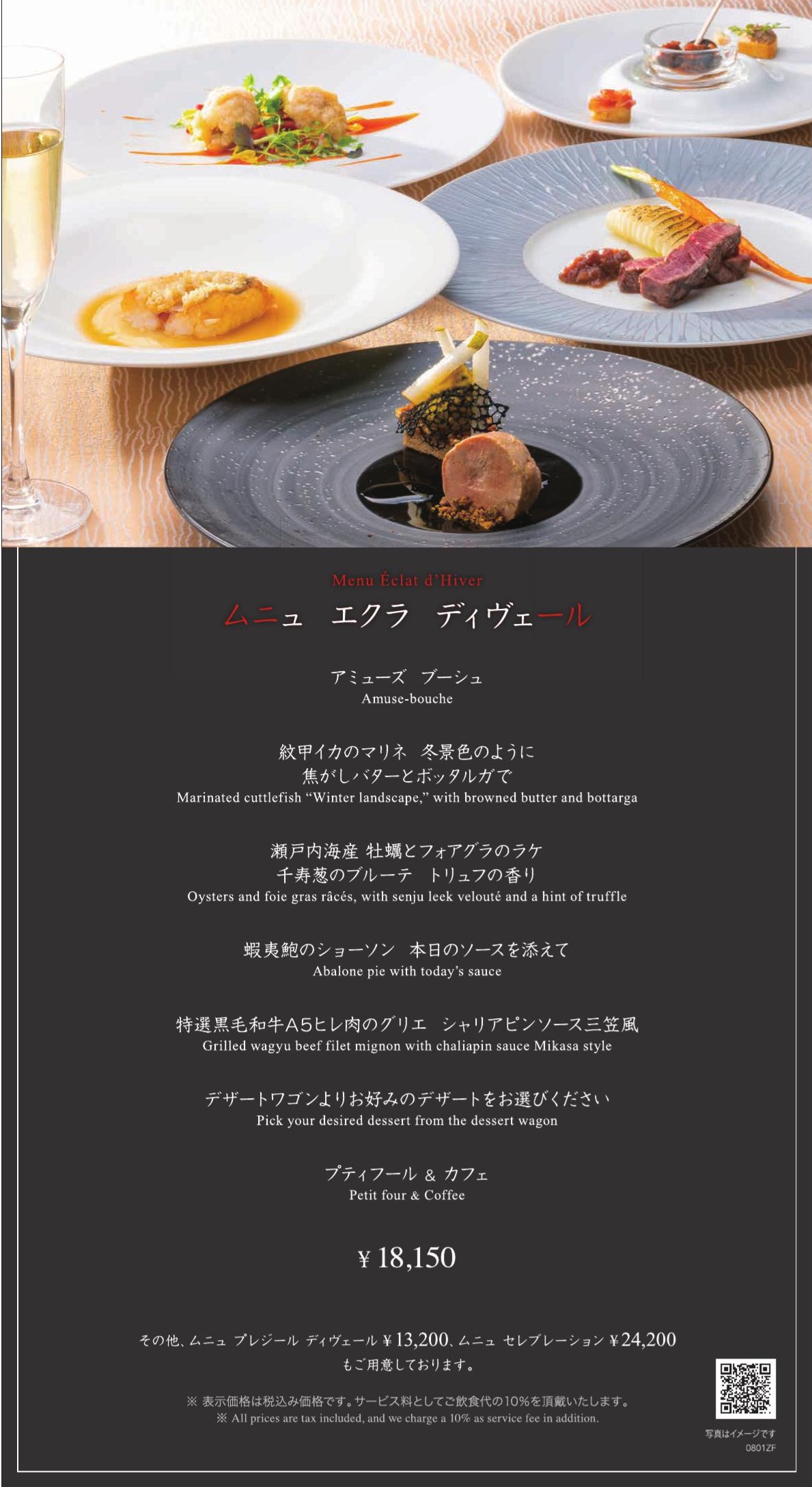 三笠会館 本店2階 フランス料理 榛名より1月のコースメニューのご案内をいたします。