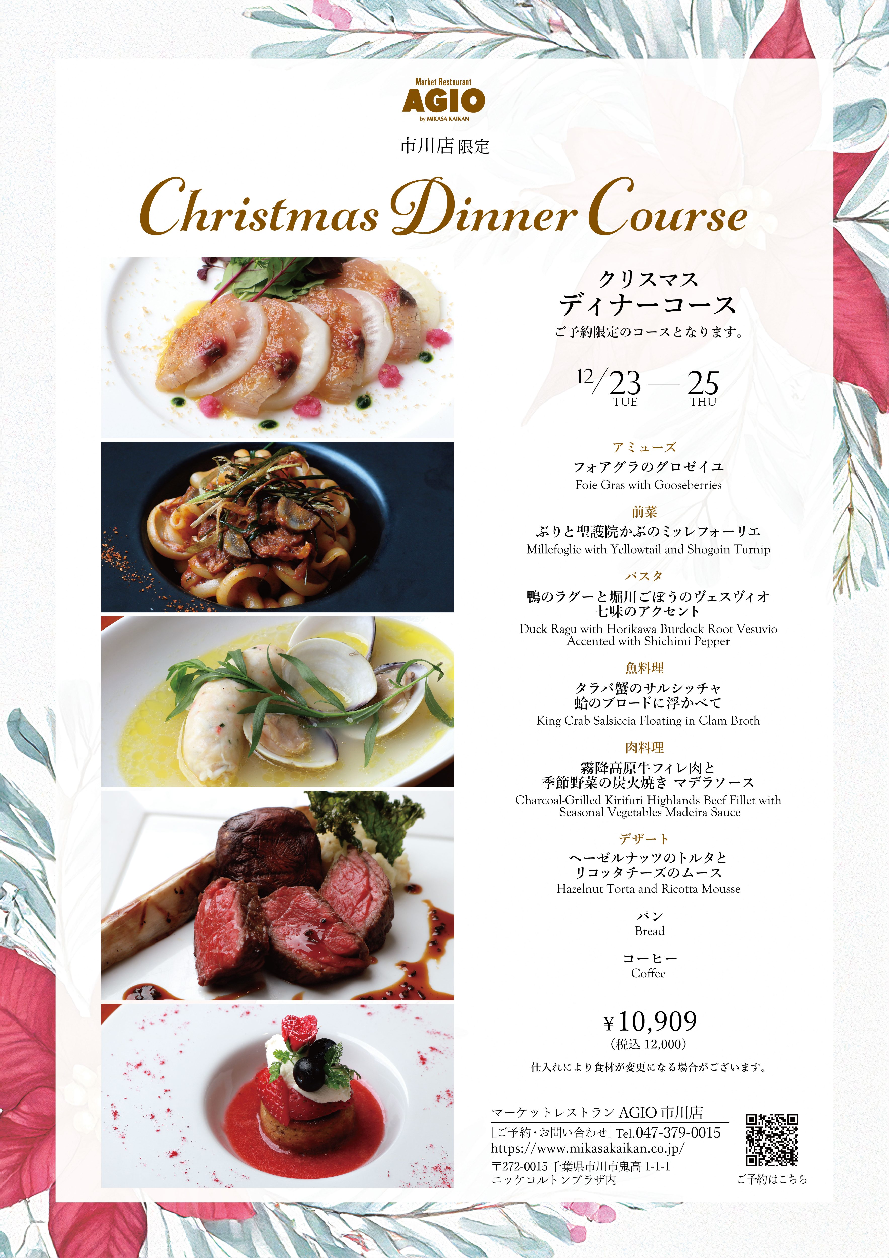 AGIO市川店よりクリスマスディナーコースのご案内をいたします。
