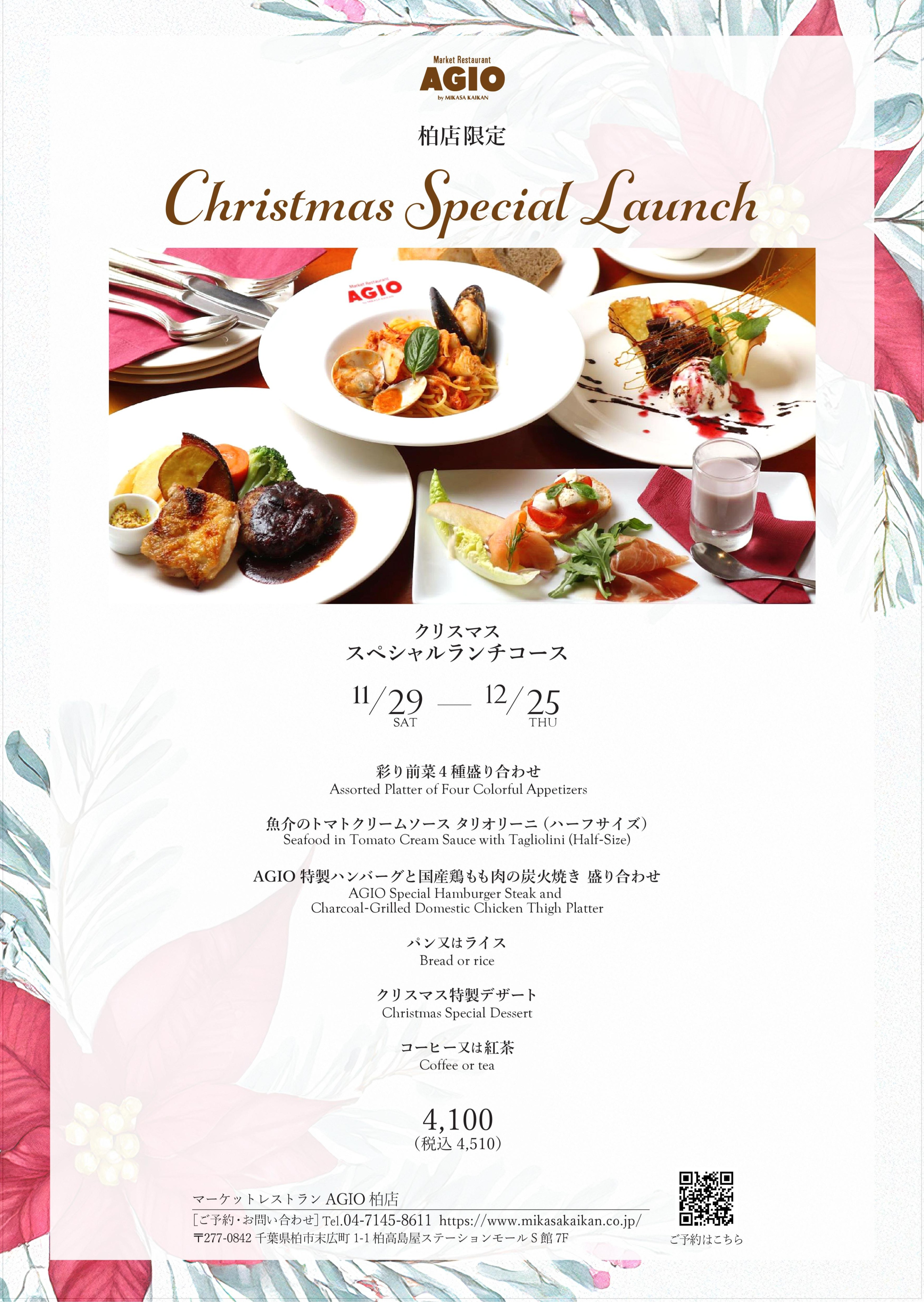 <AGIO 柏>クリスマス特別ランチコース (11/29~12/25限定)のご案内