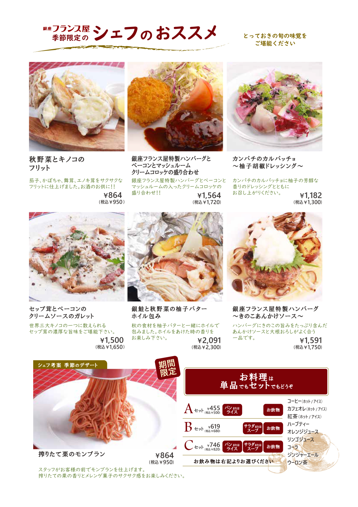 銀座フランス屋 港南台バーズ店 シェフのおすすめメニューのご案内