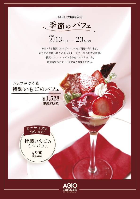 【AGIO natura大船店】期間限定 いちごのパフェ<2/13~23>