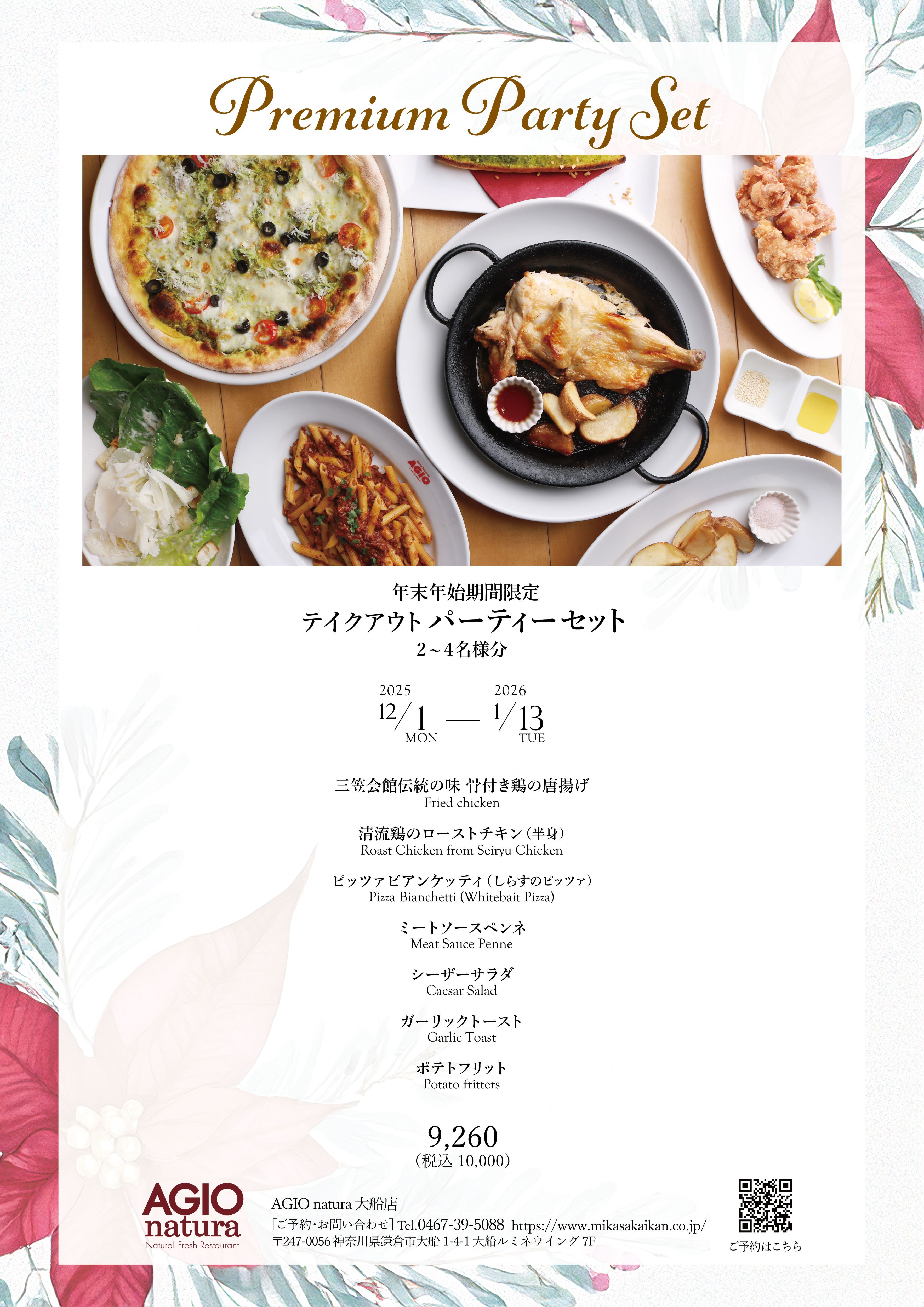 AGIO大船店より年末年始期間限定のテイクアウトパーティーセットのご案内をいたします。