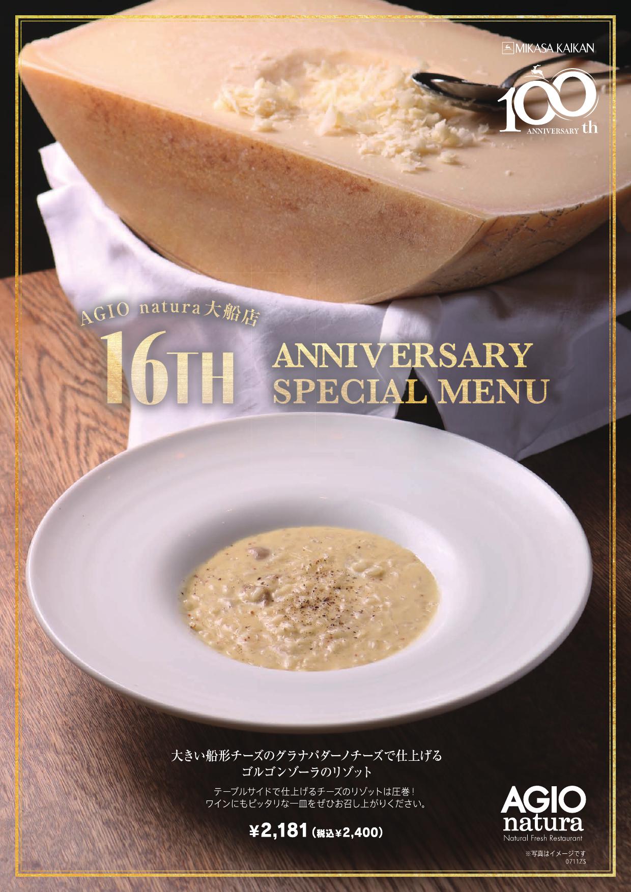 <AGIO大船店>『16周年謝恩チーズリゾット』のご案内