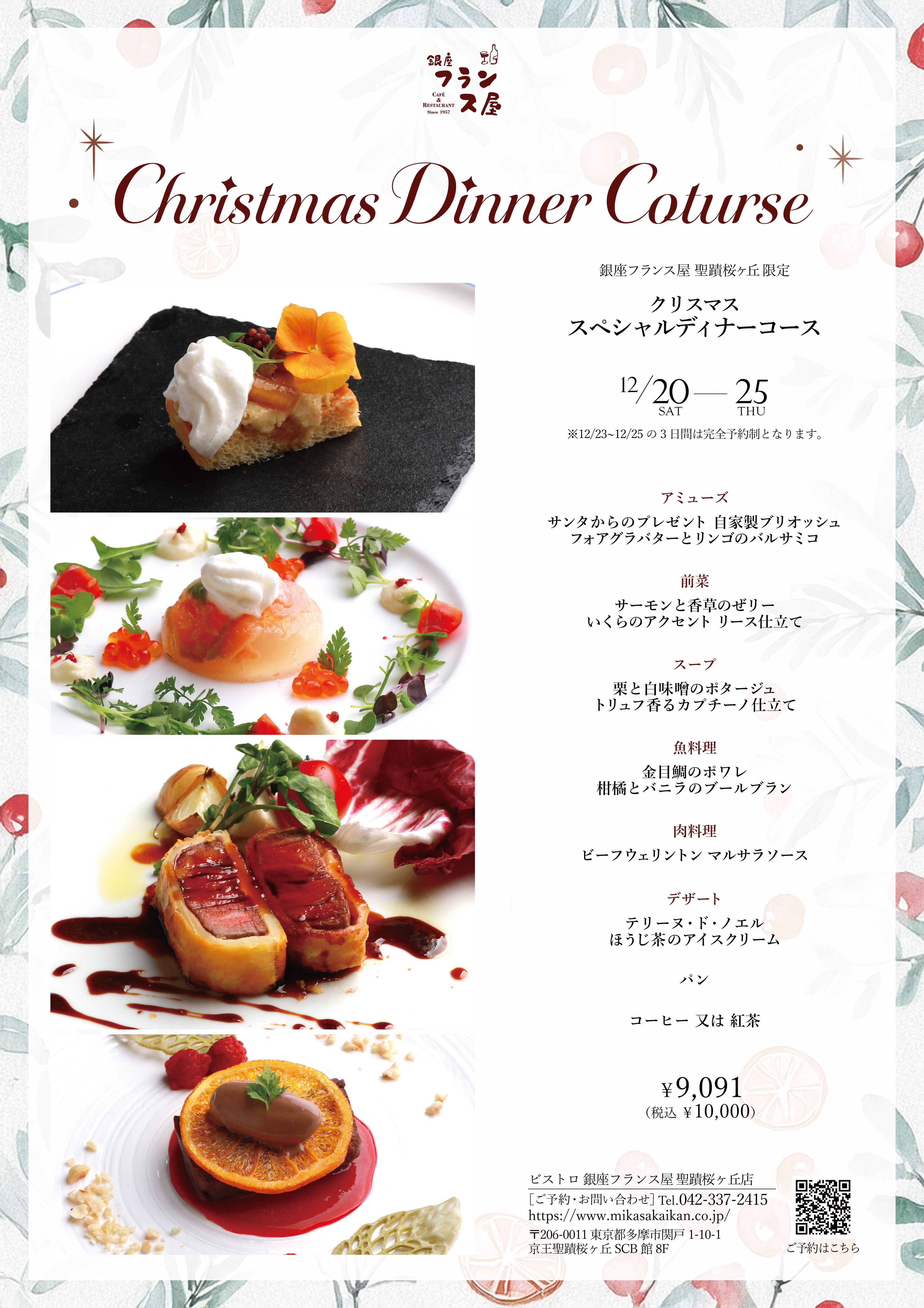 <銀座フランス屋聖蹟桜ヶ丘店>クリスマススペシャルメニューのご案内