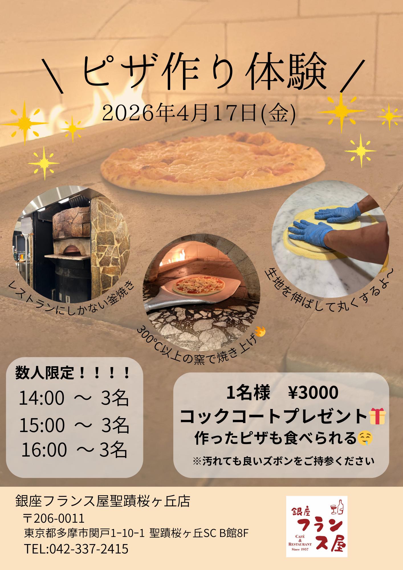 <銀座フランス屋 聖蹟桜ヶ丘店> 4/17(金)ピザ作り体験のご案内