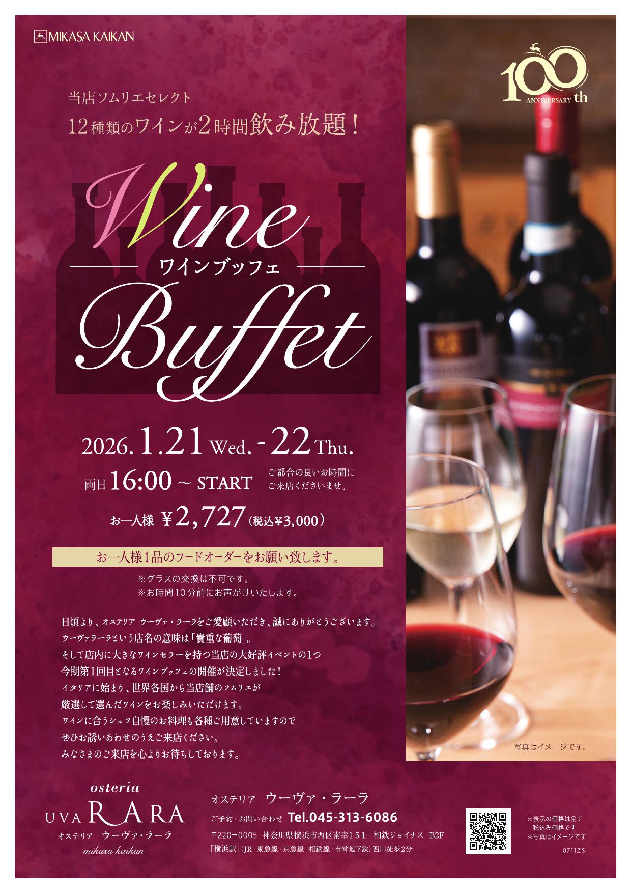 <UVA RARA 横浜>1/21・22 ワインブッフェ開催のご案内