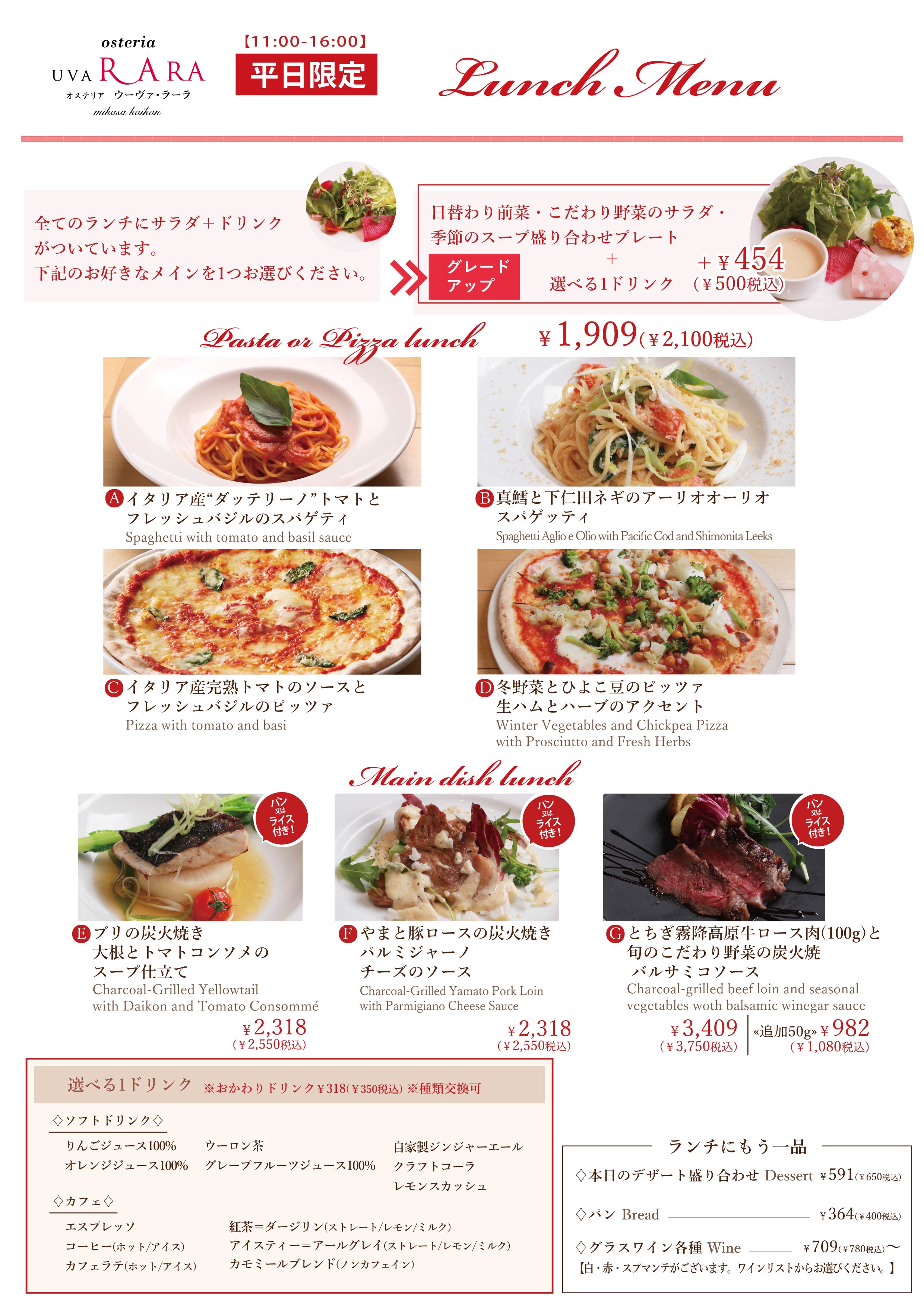 <UVA RARA 横浜>2026年1月 ランチメニューのご案内(1月6日より開始)