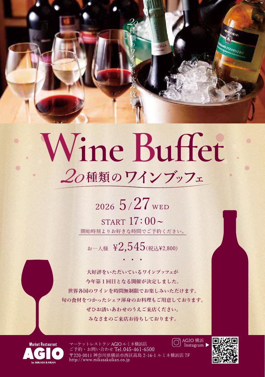 <AGIO横浜>20種類のワインブッフェ <5/27(水)開催>