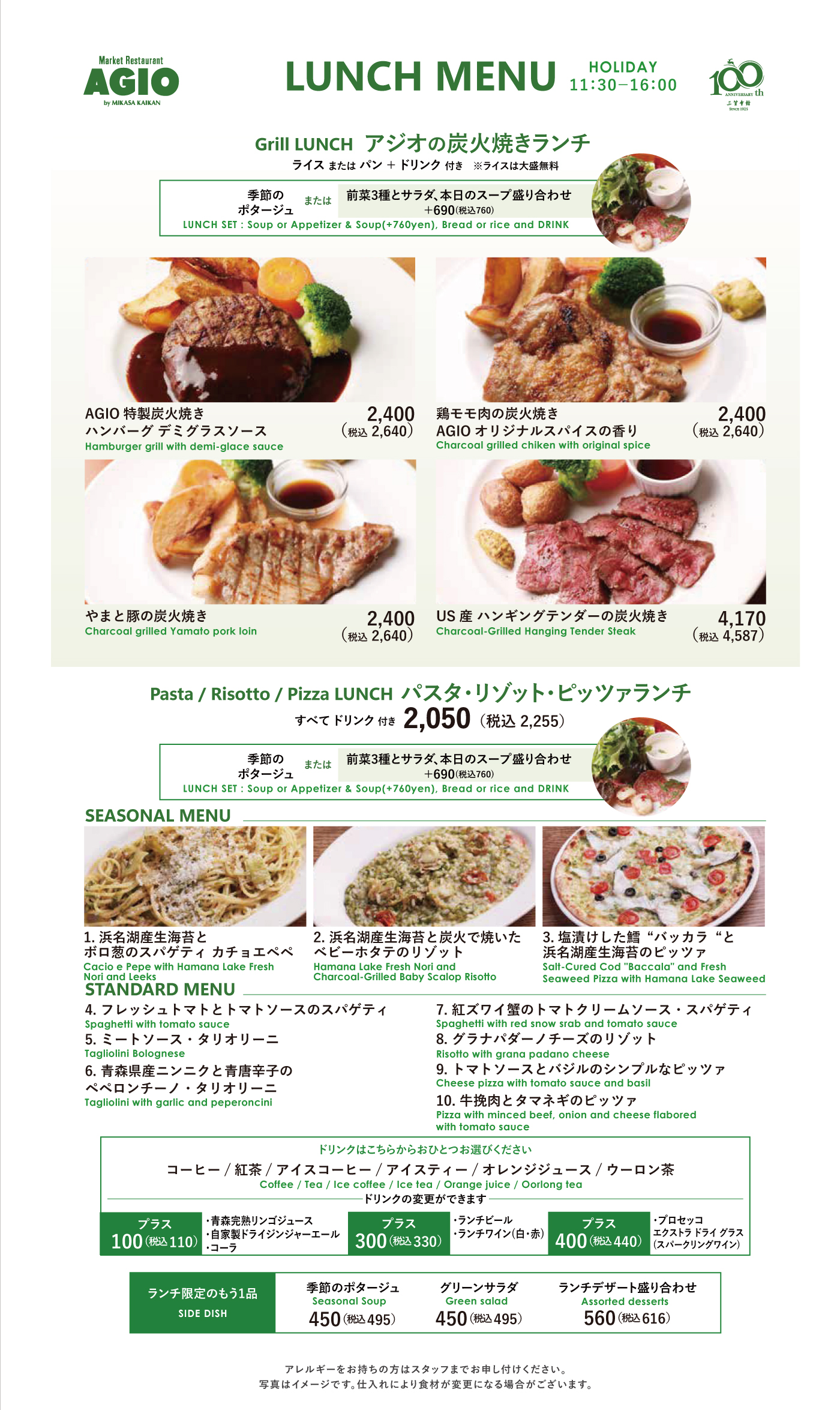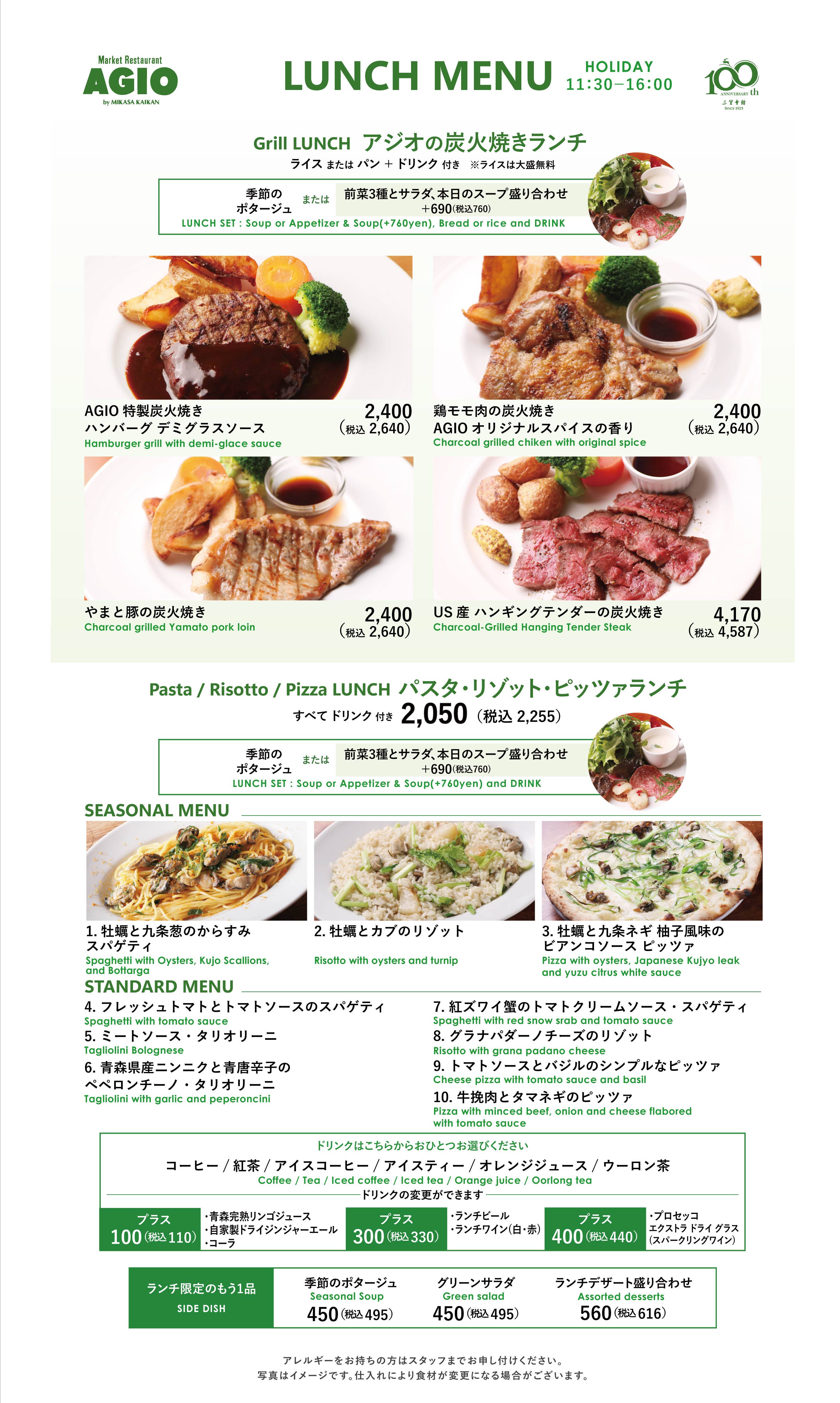 南欧の市場のにぎわいと、本場仕込みの一流料理人の技術を気楽に満喫できるマーケットレストラン。薪窯で焼き上げる薄焼きのミラノ風ピッツァ、備長炭の遠火で旨みを凝縮したグリル。現地ワイナリーで独自に入手したワインとともにご賞味ください。