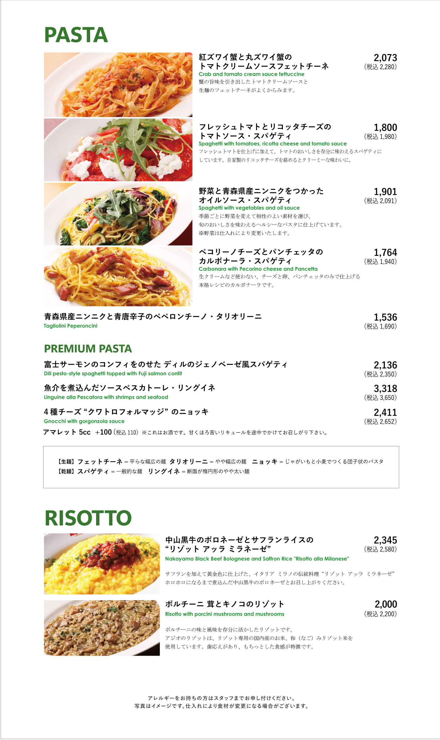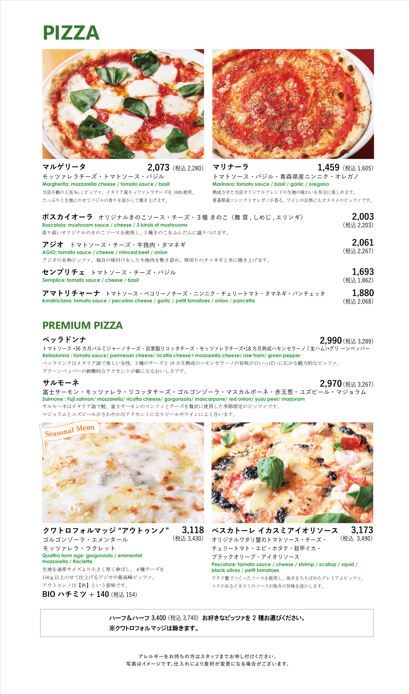 南欧の市場のにぎわいと、本場仕込みの一流料理人の技術を気楽に満喫できるマーケットレストラン。薪窯で焼き上げる薄焼きのミラノ風ピッツァ、備長炭の遠火で旨みを凝縮したグリル。現地ワイナリーで独自に入手したワインとともにご賞味ください。