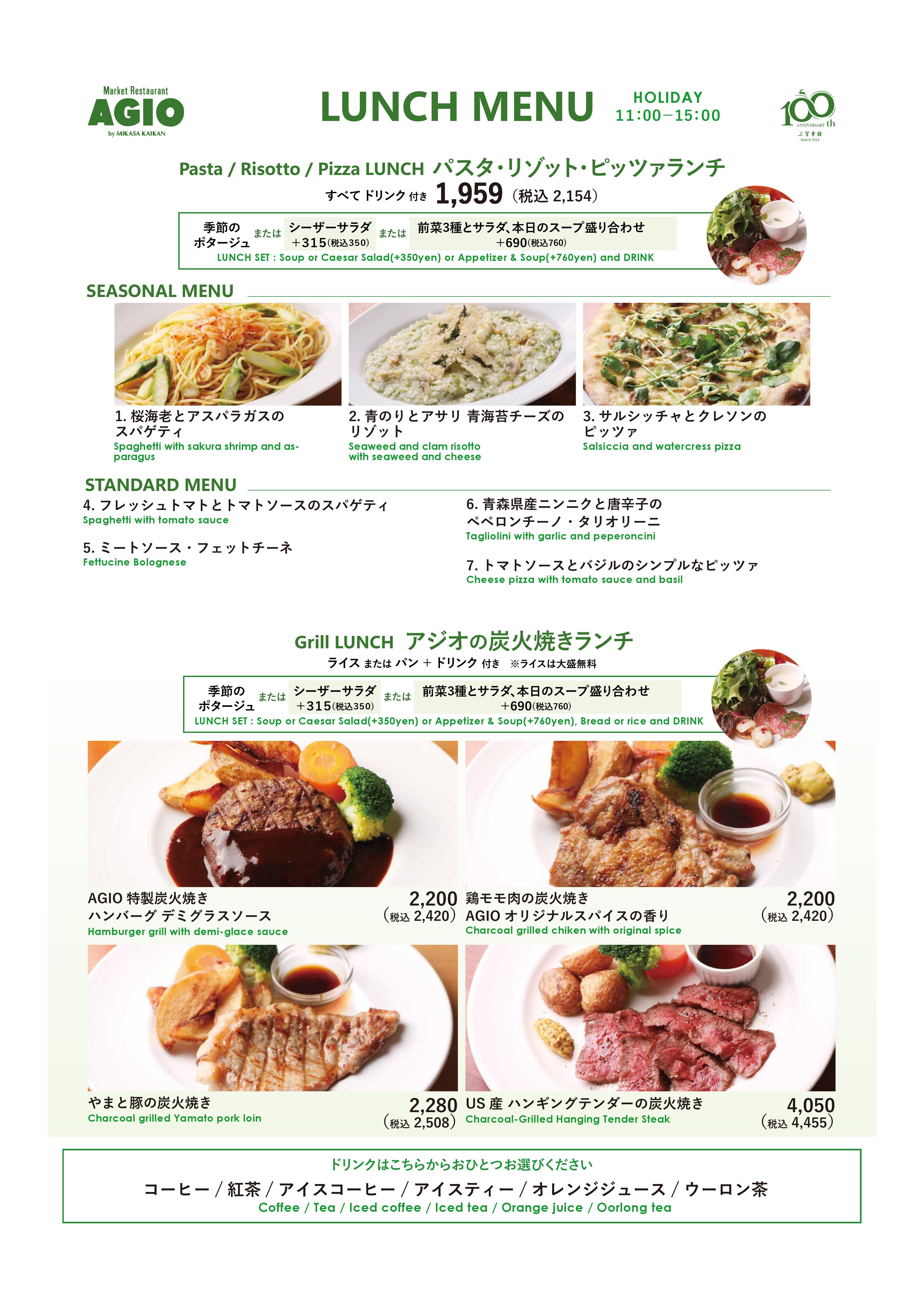 南欧の市場のにぎわいと、本場仕込みの一流料理人の技術を気楽に満喫できるマーケットレストラン。薪窯で焼き上げる薄焼きのミラノ風ピッツァ、備長炭の遠火で旨みを凝縮したグリル。現地ワイナリーで独自に入手したワインとともにご賞味ください。