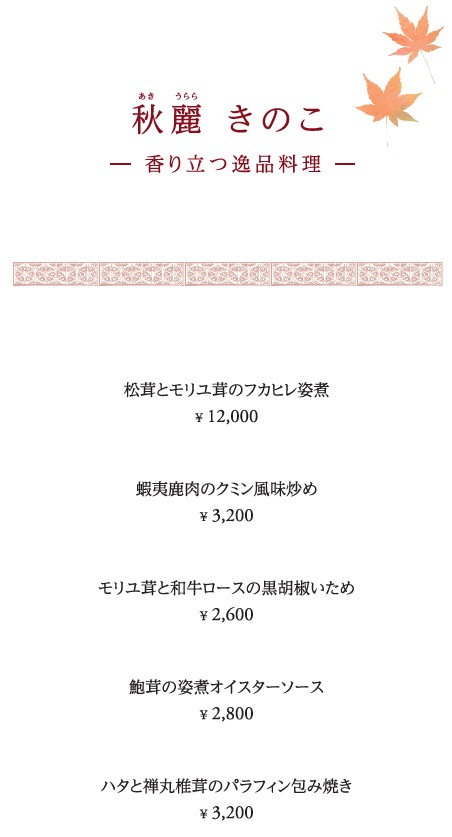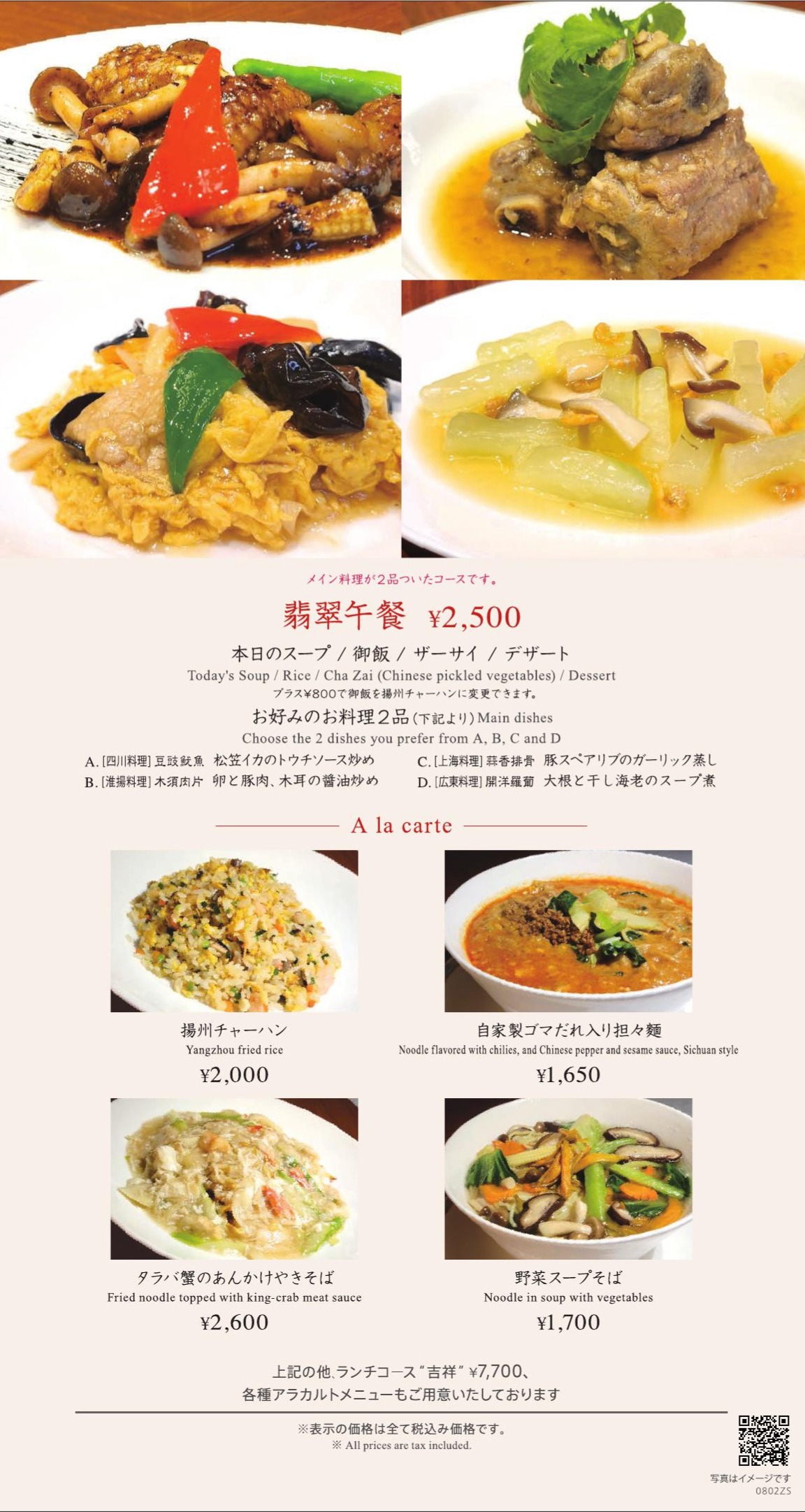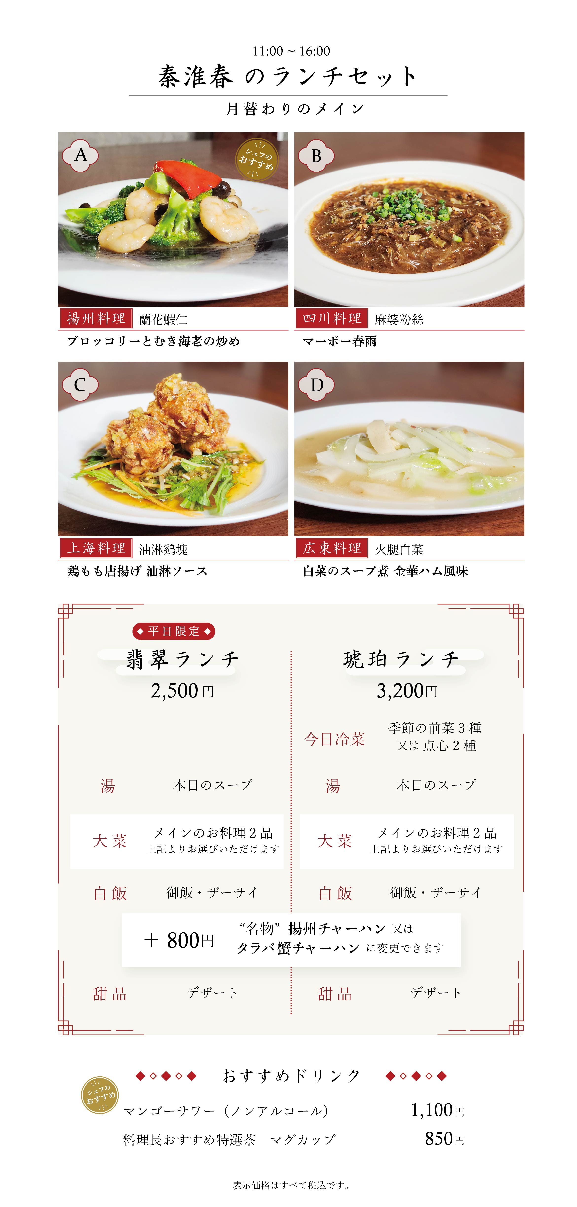 季節と共に素材を変え、旬味を味わう優しい味付けの揚州名菜。彩り豊かな二十数種類の前菜や、豆腐・野菜料理など、中国料理の中で最も上品で洗練された名菜といわれる揚州料理の真髄をお届けいたします。