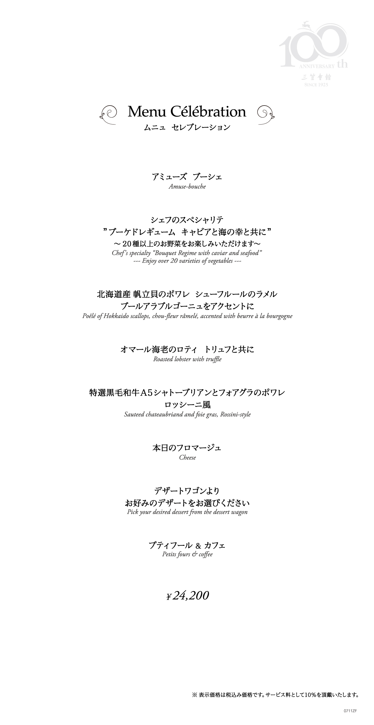 ゆったりと落ち着いた雰囲気の三笠会館本店のフレンチレストラン。厳選した食材をフランス料理の伝統を守りつつ、プロヴァンス料理のエッセンスを加えてご提供いたします。