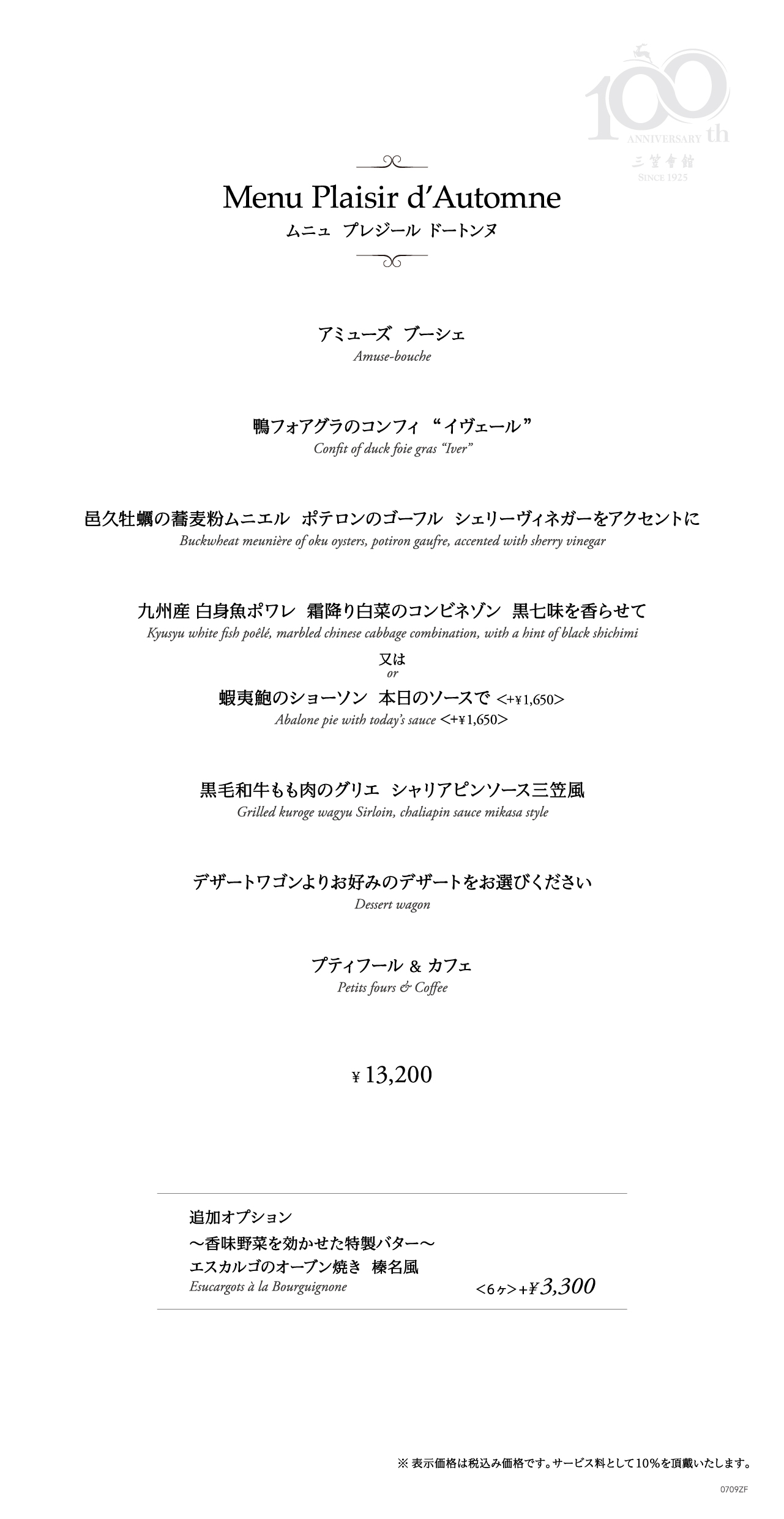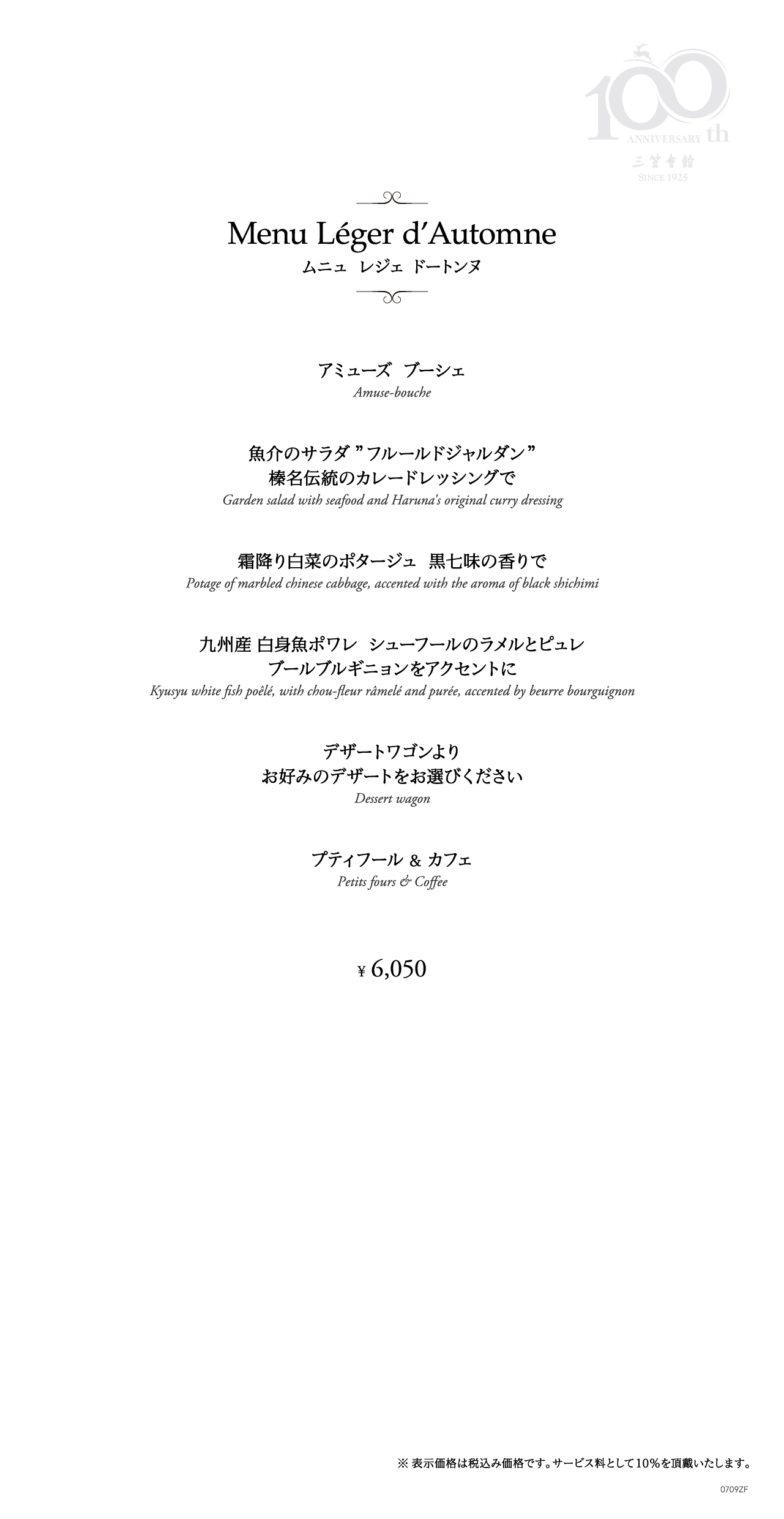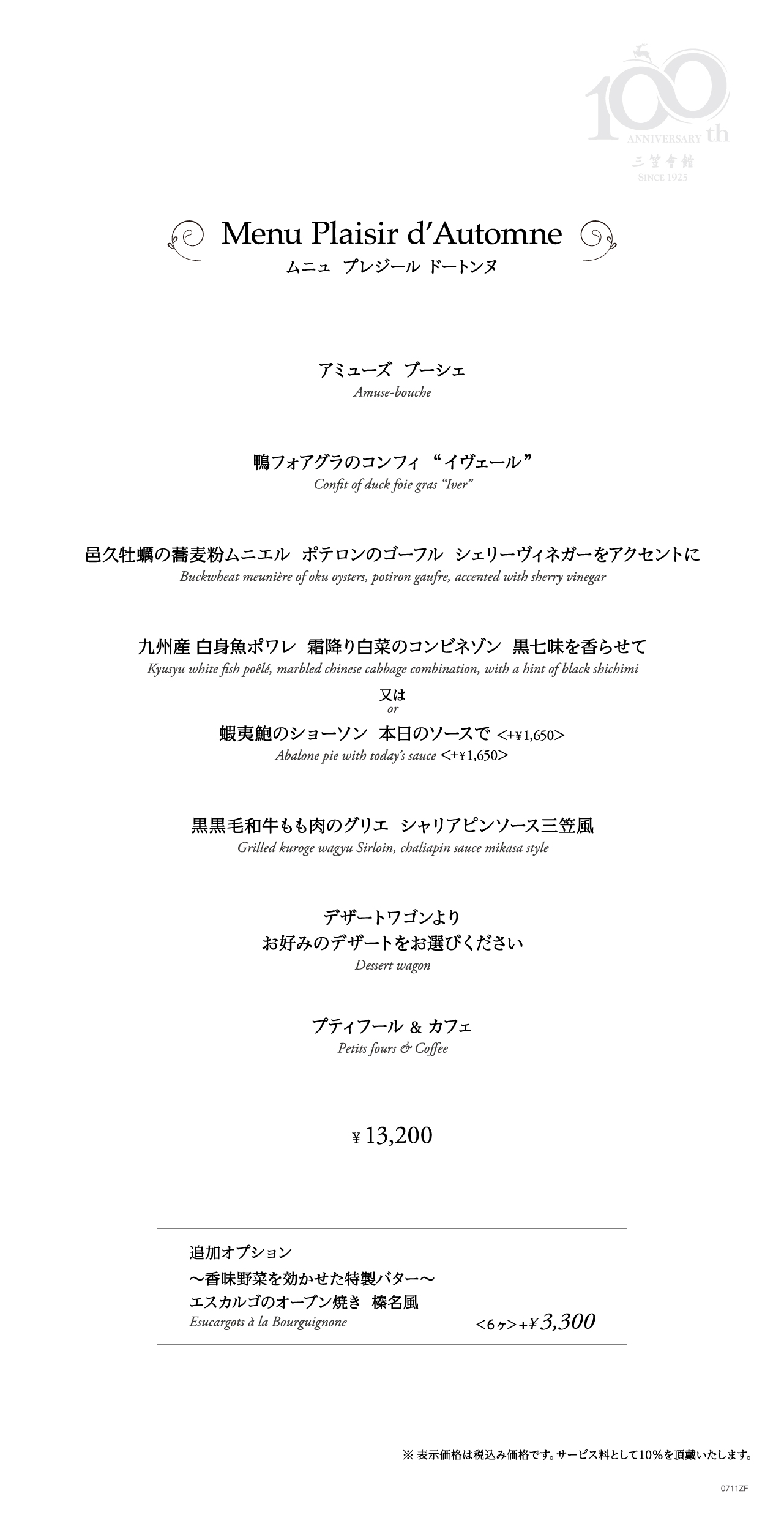 ゆったりと落ち着いた雰囲気の三笠会館本店のフレンチレストラン。厳選した食材をフランス料理の伝統を守りつつ、プロヴァンス料理のエッセンスを加えてご提供いたします。