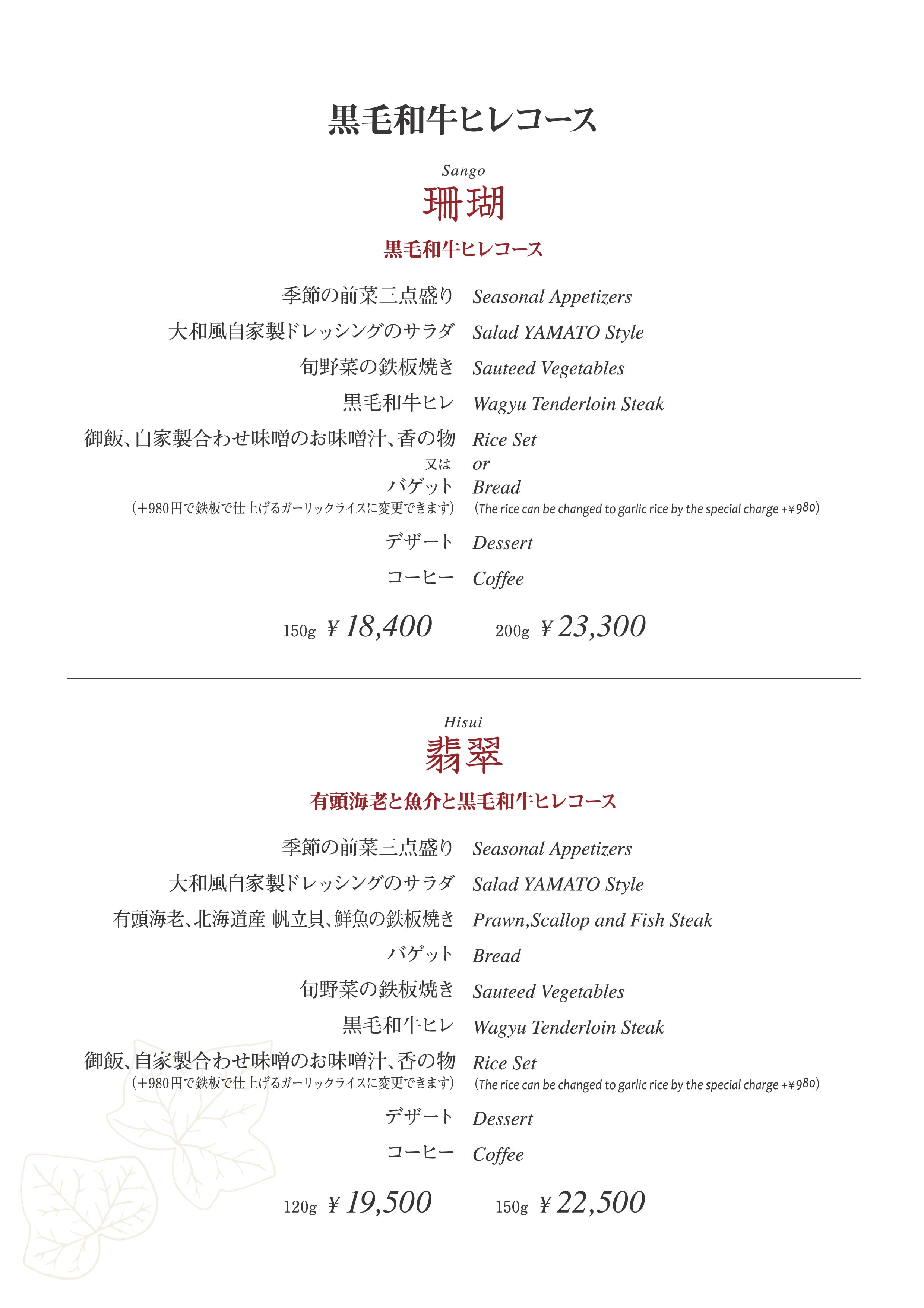 最高級神戸牛や各地の厳選した高品質の黒毛和牛などと新鮮な魚介類の鉄板焼き。お客様の一人ひとりの目の前でベテランコックが絶妙に焼き上げます。緑のテラスガーデンを眺めながら、ごゆっくりお過ごしください。